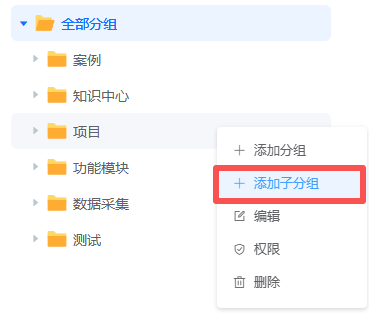 若要添加子分组,在指定分组位置右键,选择添加子分组选项即可